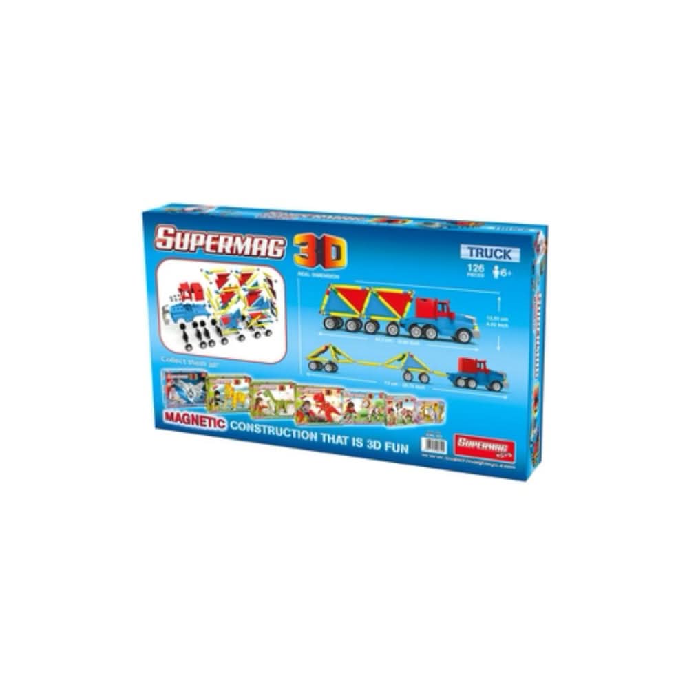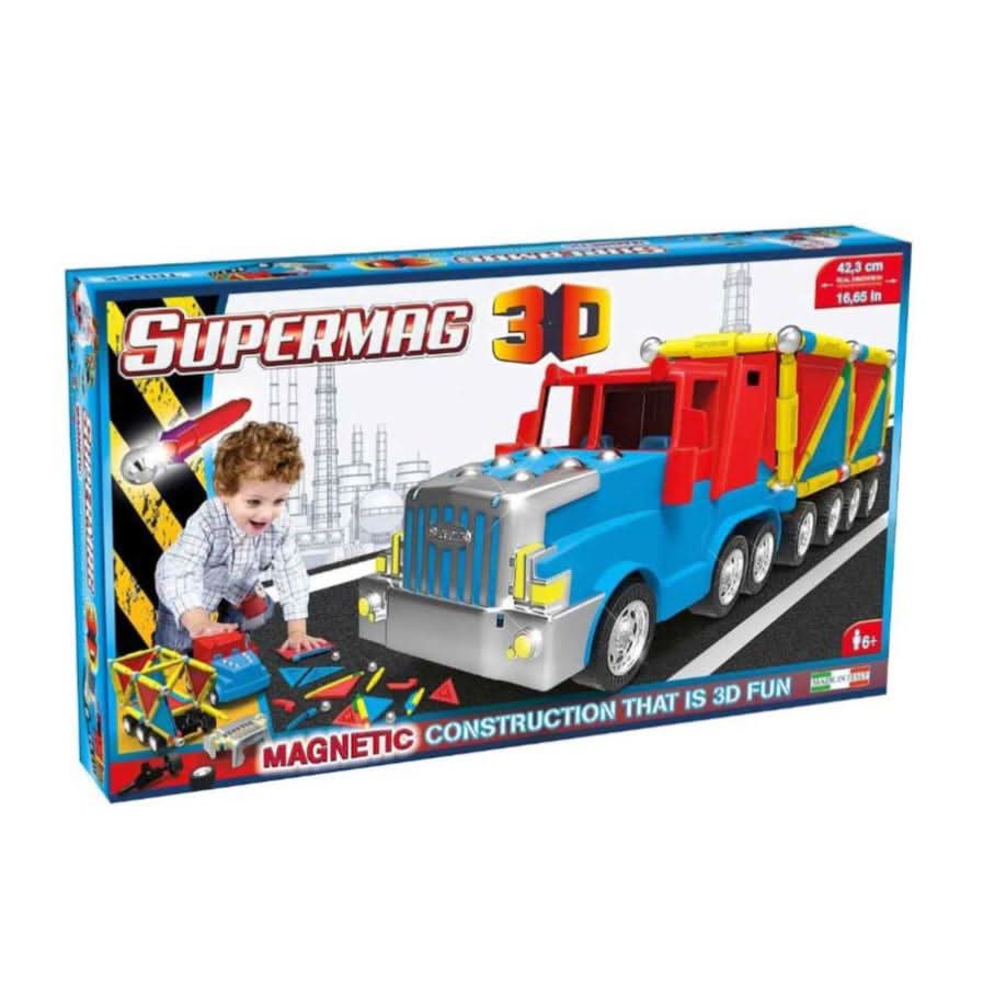"Experience the thrill of building your very own Supermag 3D Truck! This remarkable set takes creativity and construction to new heights. Inside, you'll find a wealth of magnetic components, specially designed to let you craft an impressive 3D truck that's both fun and functional.With Supermag 3D, the excitement doesn't stop at building – it's all about interactive play. Once your truck is assembled, watch it roll, transport small objects, and embark on countless adventures. Whether it's zooming around your playroom or becoming part of imaginative play scenarios, this Supermag 3D Truck set offers endless enjoyment.