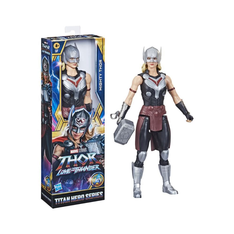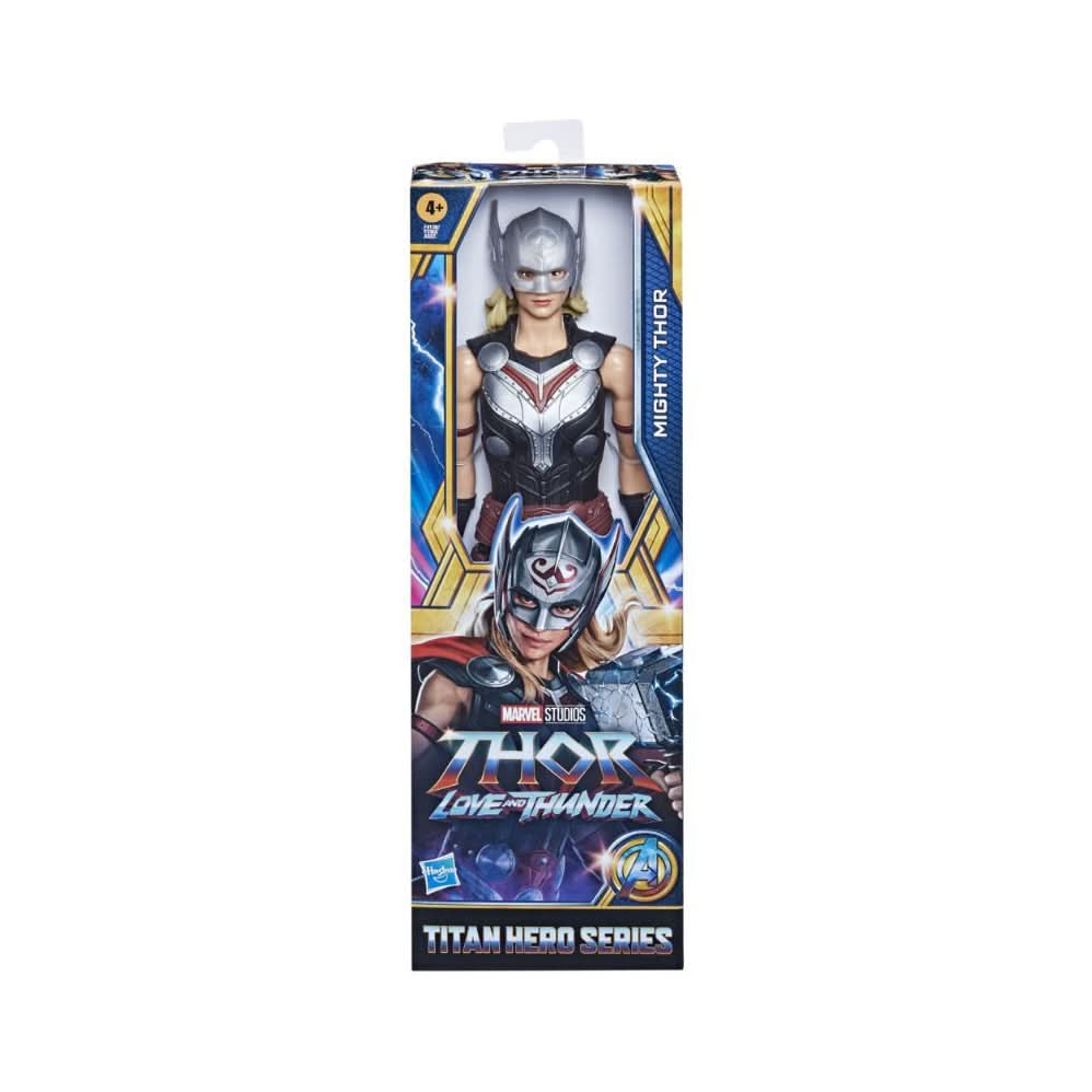 Jane Foster’s life is forever changed when she mysteriously comes to possess the hammer Mjolnir… and the power of Mighty Thor! Unleash the power of the Marvel Universe with the Marvel Avengers Titan Hero Series Thor: Love and Thunder Mighty Thor action figure! Kids ages 4 and up can imagine mighty action and adventure with this 12-inch-scale action figure, inspired by Thor: Love and Thunder, part of the Marvel Cinematic Universe. Featuring movie-inspired design and detail, as well as multiple points of articulation for poseable fun, boys and girls will love pretending to defend the universe with this large-scale Mighty Thor toy!