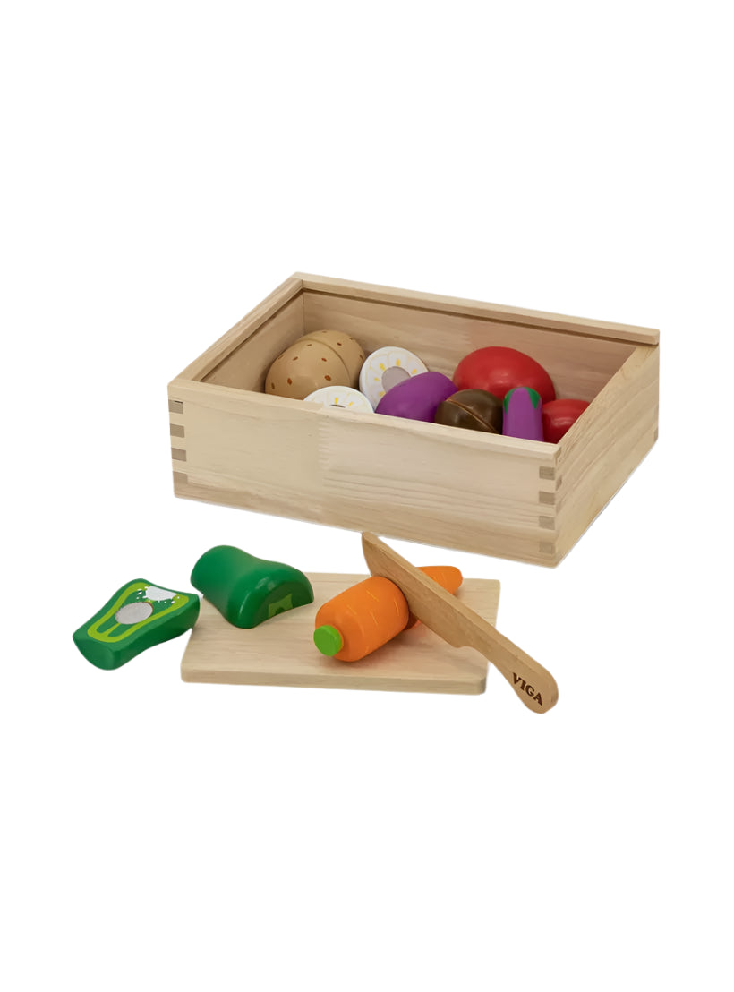 Introduce your little ones to healthy eating with the Viga Wooden Cutting Vegetable Set. This well-crafted toy food set is designed to bring timeless fun and help children develop their creativity and imagination. Made from superior quality wood, this playset includes a wooden cutting board and knife for children to chop the vegetables into halves or several pieces, which can then be easily fitted back together using Velcro. The set includes a variety of vegetables such as carrots, tomatoes, onions, cucumbers, and peppers. The colors are vibrant, and the details are realistic, which makes it easier for children to learn about different vegetables and their shapes. The wooden box with an acrylic sliding lid makes it easy to clean up and store, making it a perfect toy for parents who are looking for educational and fun activities for their kids. The Viga Wooden Cutting Vegetable Set is perfect for children between the ages of 3-6 and is designed to help develop fine motor skills, hand-eye coordination, and problem-solving abilities. The toy also promotes social skills, encourages children to share and work together, which helps in building their confidence and self-esteem.