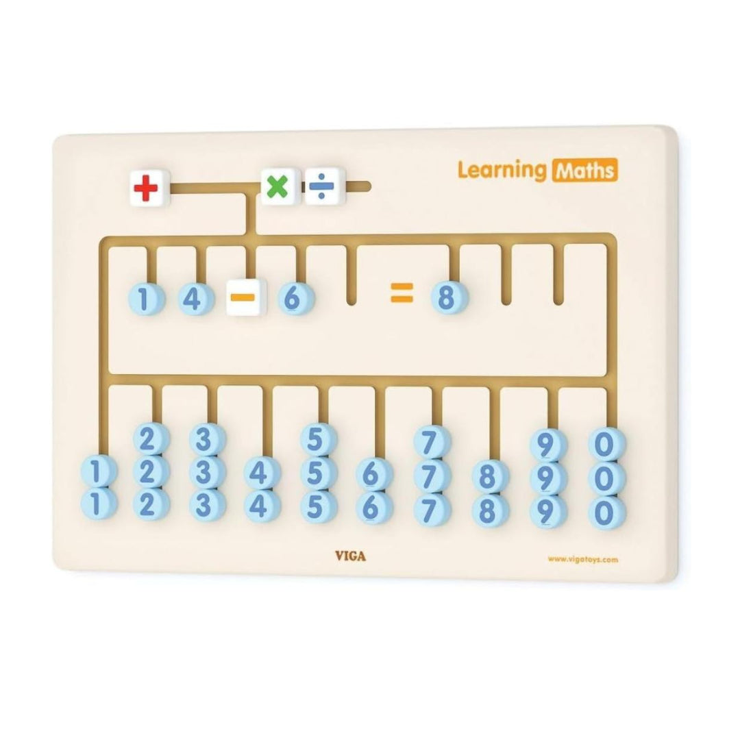 The Viga Toys Wall Game - Learning Maths is an interactive educational toy designed to teach children basic mathematical concepts in a fun and engaging manner. This wall-mounted game features sliding numbers and arithmetic symbols, allowing children to create and solve simple equations. By moving the numbers and operators along the board, kids can practice addition, subtraction, multiplication, and division, enhancing their numeracy skills.