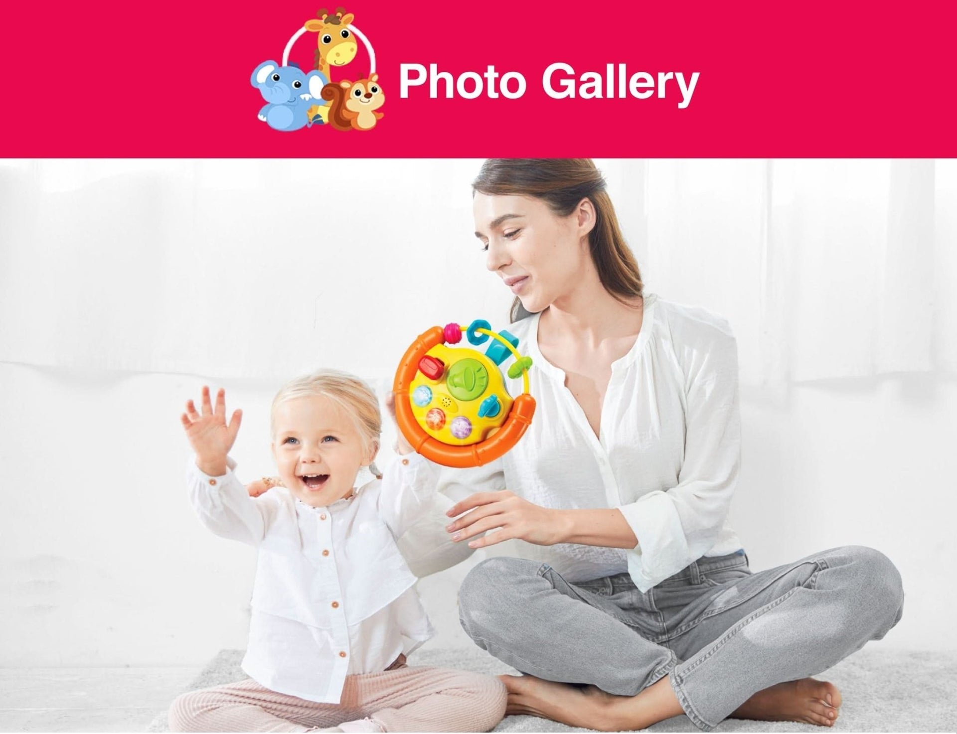 The Winfun Fun Driver Junior is a colorful chunky steering wheel. This activity toy has a movable gearshift, attached strap for easy attachment to a stroller or car seat. Moreover, the win fun driver has colorful sliding bead and horn buttons that play realistic sound effects, and attached lights that flash with realistic sounds.