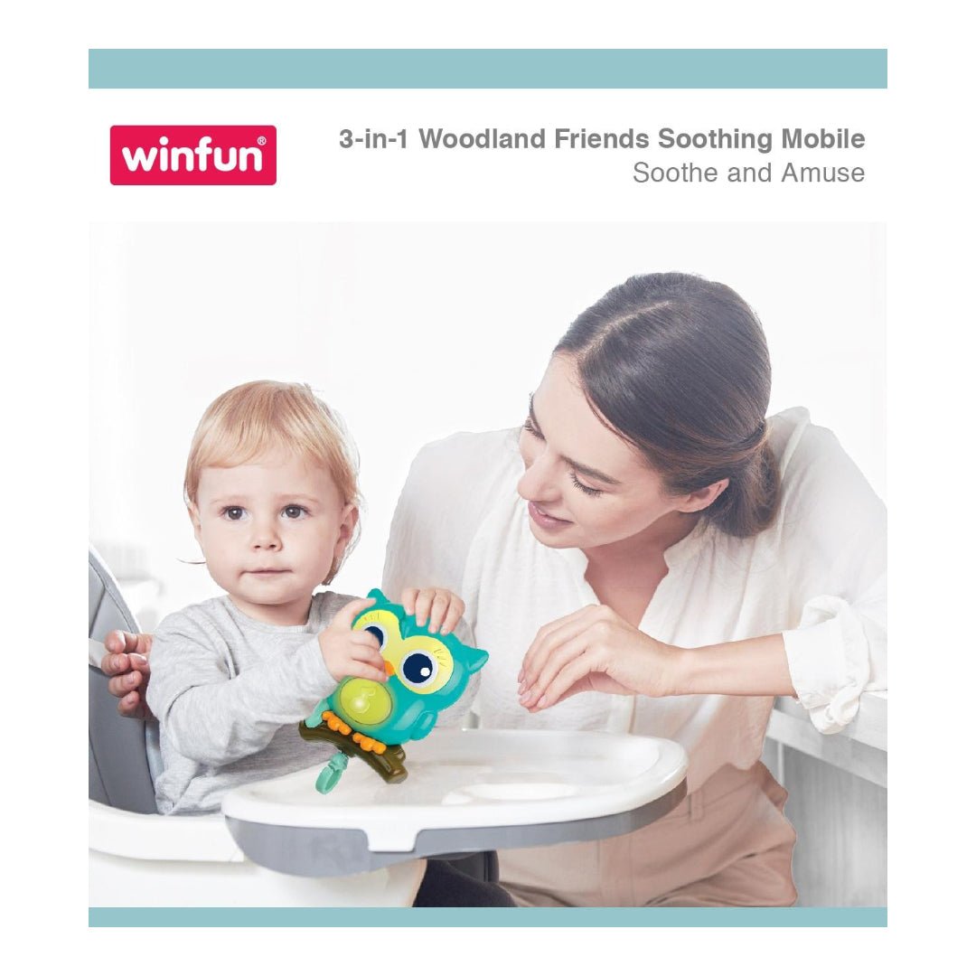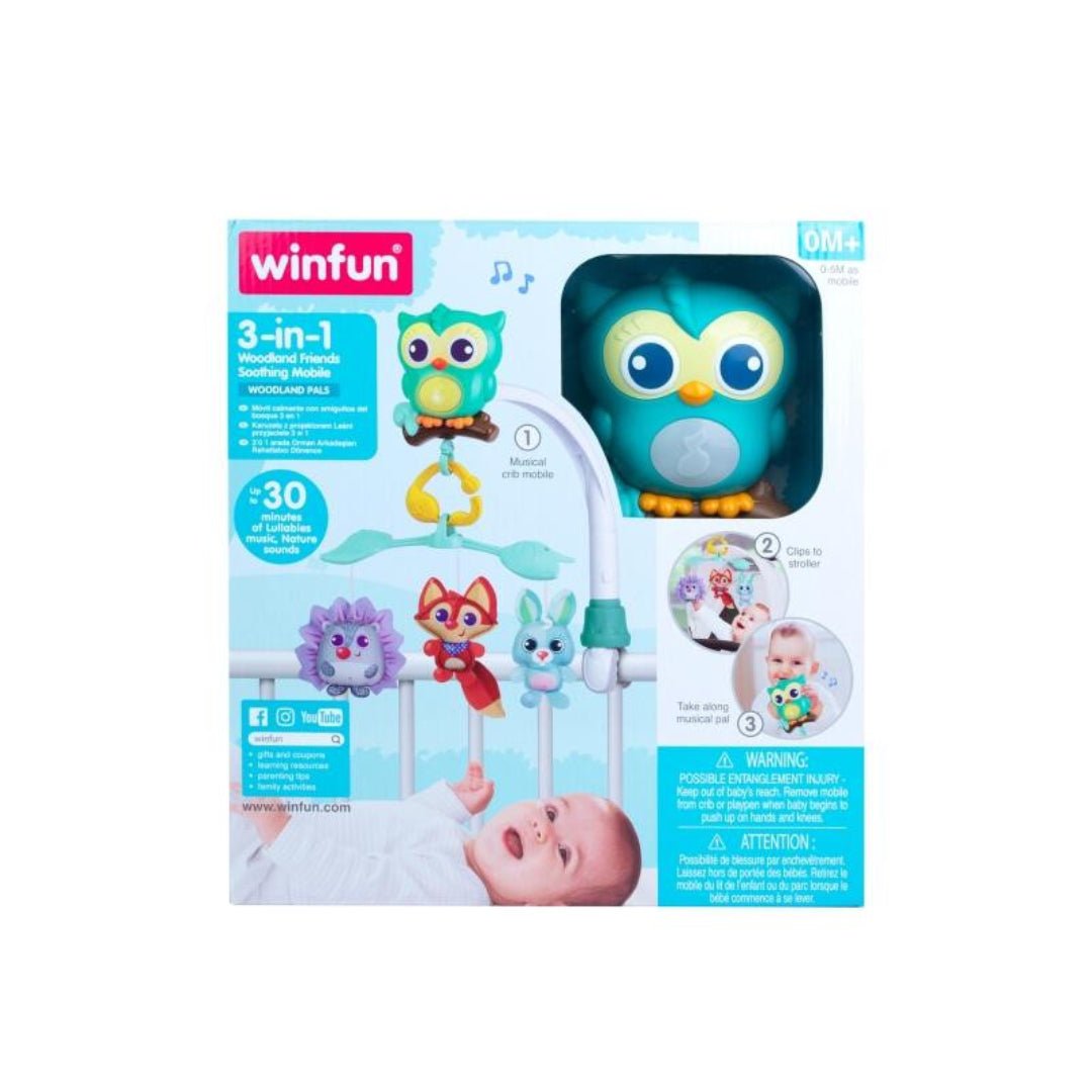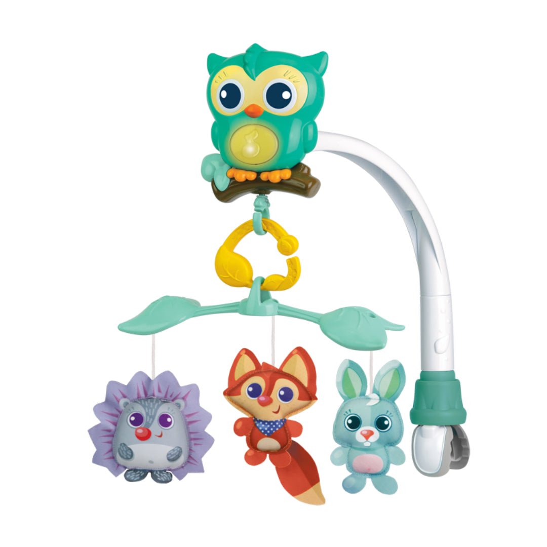 - Musical crib mobile with up to 20 minutes of soothing lullabies and 3 cute woodland pals