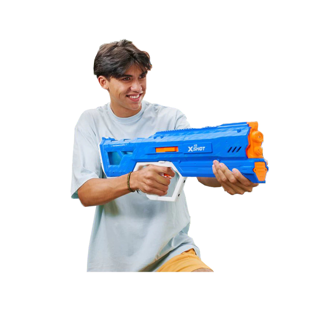 Get ready to rule your summer water battles with the XSHOT Fast Fill motorized blaster! This motorized blaster refills in just 1 second. With a 1100ml capacity and blasting water up to 29 feet, it's unstoppable. Plus, the rechargeable battery keeps the fun going. Get ready to dominate every water fight with ease!